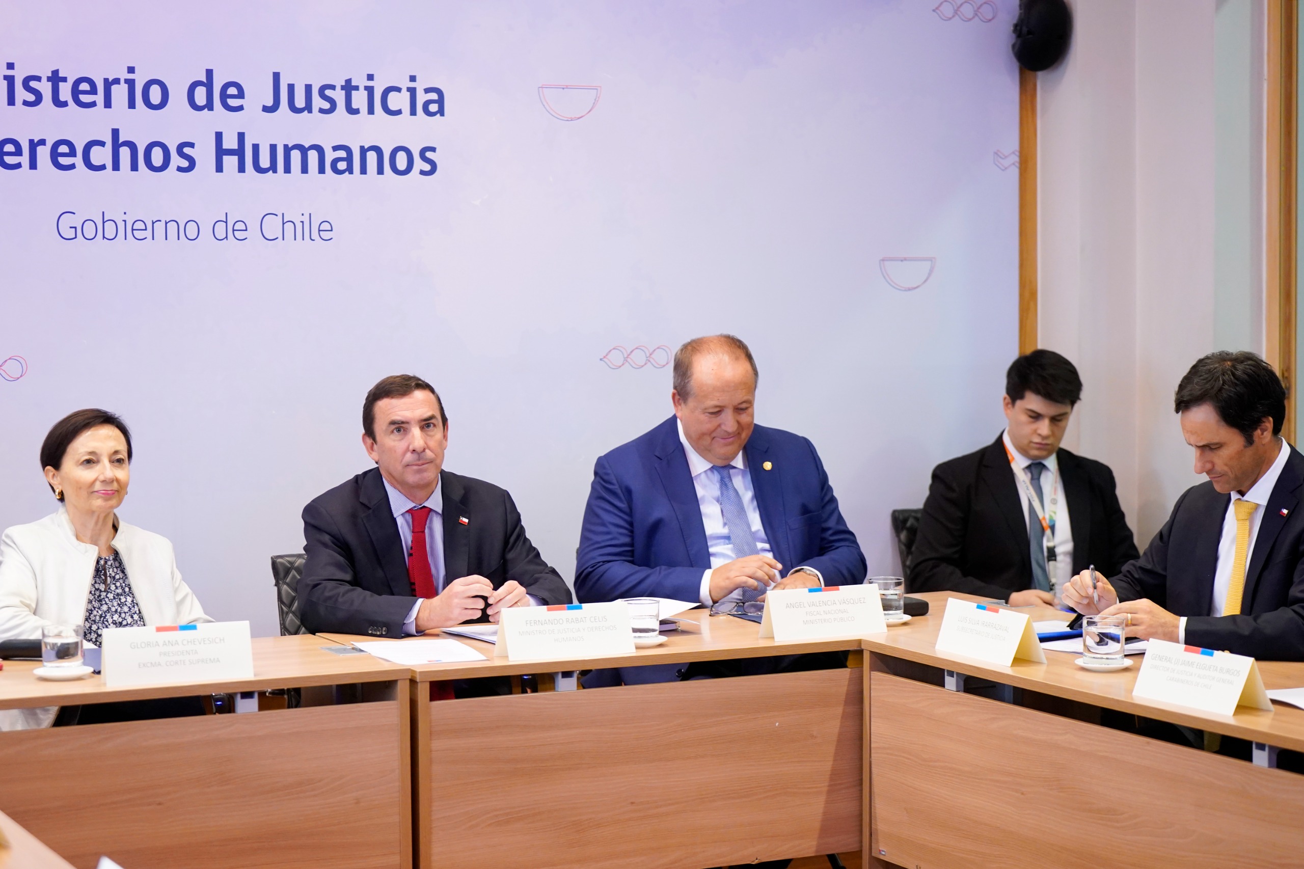 La sesión contó con la participación de la presidenta de la Corte Suprema, Gloria Chevesich; el fiscal nacional, Ángel Valencia; el subsecretario de Justicia, Luis Silva; el subsecretario de Derechos Humanos, Pablo Mira; la defensora nacional, Verónica Encina; y el director de Justicia y Auditor General de Carabineros de Chile, general Jaime Elgueta.
